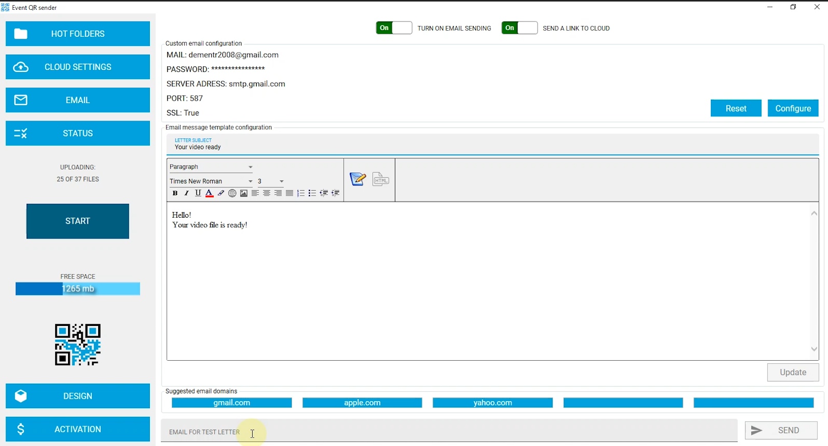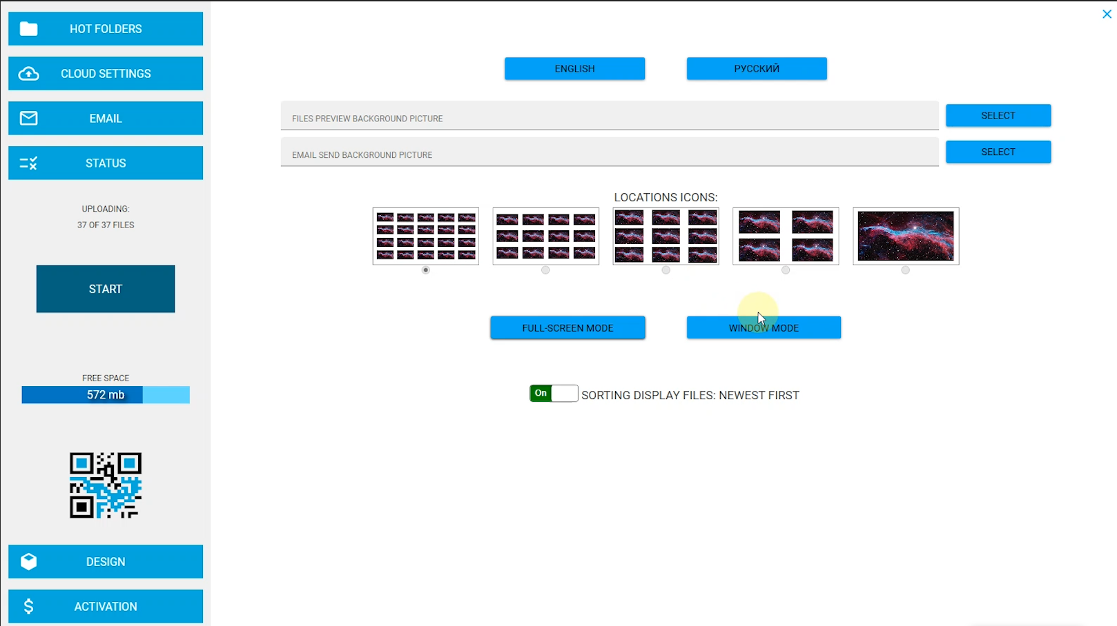 Application for file sharing via QR and cloud. Work with QR codes + Cloud or Email.